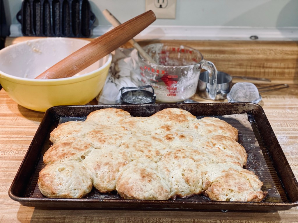 Earlier this year (pre-COVID and pre-Cancer 2.0) I went to Texas for a very special friend’s daughter’s (who is also a very special friend now) wedding. One of my days there I had time to kill so I drove down to Waco to see what all the fuss was about at Magnolia Market. I made the rounds. I went to the coffee shop, the store, the clearance store on the other side of town (the original store), and of course, the Bakery. I had a biscuit and a cupcake and they were both fabulous. Since then I have been eyeing the Magnolia Table cookbook and it’s sequel. I have yet to purchase either of them but I did come across a raving review of the biscuit recipe (complete with recipe) online. I felt like I was obligated to try it, and this morning felt like the right day.
